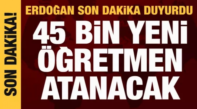 Cumhurbaşkanı Erdoğan, 45 bin yeni öğretmen ataması yapılacağını, bu görevlendirmelerde yaraların sarılması bakımından deprem bölgelerinin öncelikli olacağını duyurdu.