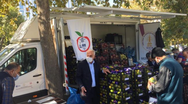 İESOB aracından kış meyvelerinin dağıtımı da başladı. İzmir Pazarcılar Odası Başkanı Hamdin Erişen, 2 buçuk ton mandalina ve elma ikramında bulunduklarını söyledi.