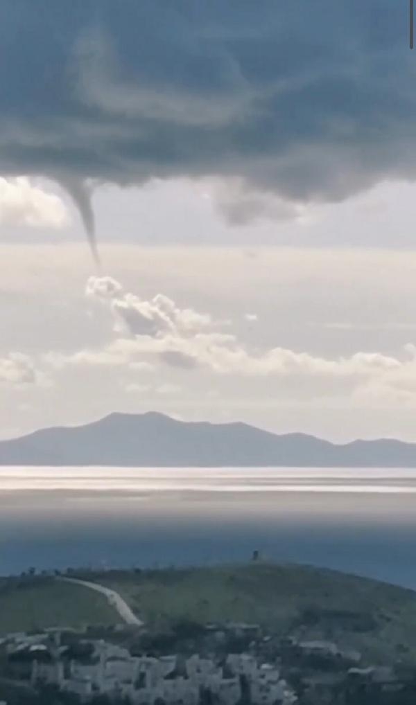 MUĞLA'nın Bodrum ilçesinde hortum, dolu, rüzgar ve kuvvetli sağanak yaşamı olumsuz etkiledi. Denizde meydana gelen hortum anbean kameralara yansıdı.