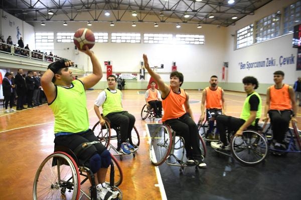 BORNOVA'da 3 Aralık Dünya Engelliler Günü'nde Suphi Koyuncuoğlu Anadolu Lisesi öğrencileri ile Barışgücü Tekerlekli Sandalye Basketbol Takımı oyuncuları farkındalık maçında buluştu.