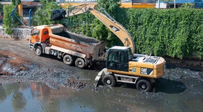 İZMİR'de Meles ve Arap derelerindeki temizlik çalışmalarını tamamlayan İzmir Büyükşehir Belediyesi Su ve Kanalizasyon İdaresi (İZSU) Genel Müdürlüğü ekipleri, şimdi de Manda Deresi'nde çalışma başlattı. 2 günde dereden suyun denize akışını engelleyen 4 bin ton balçık çıkarıldı.