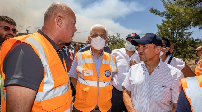 İzmir Büyükşehir Belediye Başkanı Tunç Soyer, Muğla'nın Bodrum ilçesindeki orman yangınlarından etkilenen mahalleleri ziyaret etti. Yangınların sona ermesinin ardından her ihtiyaca cevap vermeye hazır olduklarını söyleyen Başkan Tunç Soyer, "Sizi kendi kaderinizle baş başa bırakmayacağız. Bütün mesele envanteri çıkartmak, hasarın tespit edilmesi. Biz hazırız, bunun için buradayız" dedi.