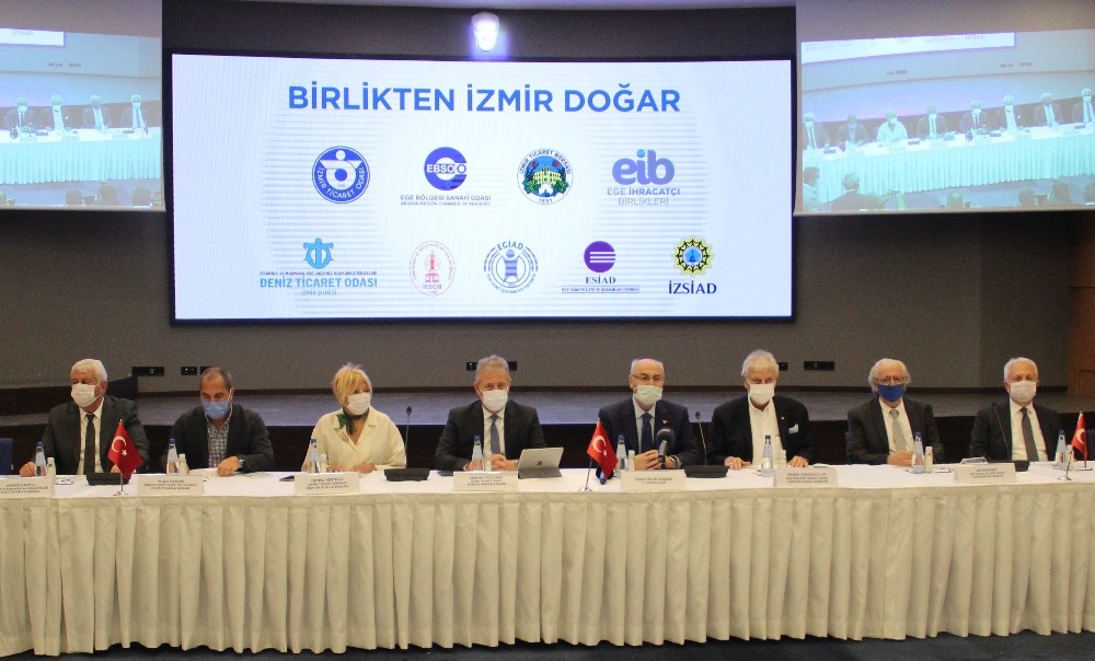 İzmir'de yaşanan 6.6'lık depremin ardından pek çok vatandaş evsiz kalırken, İzmir iş dünyası da depremzedeler için bir araya geldi. İzmir Ticaret Odasında "Birlikten İzmir Doğar" isimli sosyal destek kampanyası için düzenlenen basın toplantısına İzmir Valisi Yavuz Selim Köşger'in yanı sıra İzmir Ticaret Odası Başkanı Mahmut Özgener, Ege Bölgesi Sanayi Odası Başkanı Ender Yorgancılar, Ege İhracatçı Birlikleri Başkanı Jak Eskinazi, İzmir Ticaret Borsası Başkanı Işınsu Kestelli, Deniz Ticaret Odası İzmir Şube Başkanı Yusuf Öztürk, İzmir Esnaf ve Sanatkarlar Odası Birliği Başkanı Zekeriya Mutlu, İzmir Sanayici ve İş İnsanları Derneği Başkanı Hasan Küçükkurt, Ege Sanayiciler ve İş İnsanları Derneği Başkanı Fadıl Sivri, İzmir Ticaret Odası Meclis Başkanı Selami Özpoyraz, Ege Bölgesi Sanayi Odası Meclis Başkanı Salih Esen, İzmir Ticaret Borsası Meclis Başkanı Şükrü Barış Kocagöz, Deniz Ticaret Odası İzmir Şubesi Meclis Başkanı Kenan Yalavaç ve Ege Genç İş İnsanları Derneği Başkanı Mustafa Aslan katıldı.