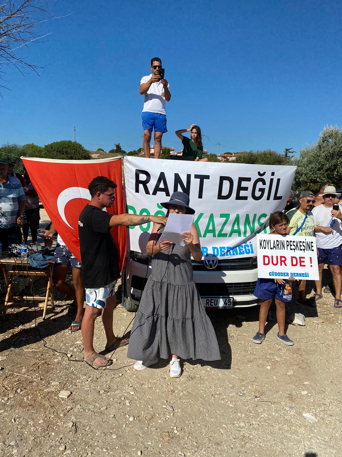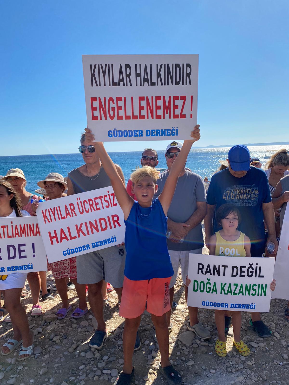 Dernek Başkanı Av. Seher Gacar tarafından okunan açıklamada “güç. Ben buradan Bakanımız Sayın Özhaseki’ye sesleniyorum.. Lütfen yarımadamıza teşrif etsin , birlikte tebdil-i kıyafet yarımadamızdaki özel işletmelere kiralanan plajları gezelim. Kiralama şartnamesini ihlal etmemiş tek bir işletme çıkmayacaktır… Sayın Bakanlık, Sayın Genel Müdürlük.. Lütfen kiralama ihalesi kararınızdan vazgeçin.. sizin elinizde mevzuat ve şartname var, bizde ise az evvel bahsettiğim somut ve çok can yakan gerçekler. Biz bu filmi gördük.. Tekrarını da yeni versiyonunu da görmek istemiyoruz…” denildi.
