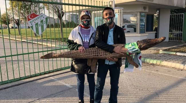 Yeşil-beyaz sevdalısının Sudan'dan satın aldığı içi doldurulmuş timsahın, derisini, dişlerini ve kollarını görenler şaşkınlıklarını gizleyemedi."14 aydır Sudan'dayım. Bursaspor'umu çok özledim. Ziyarete geldim. Ama pandemiden dolayı giremedim. Bursasporlu olduğum için gurur duyuyorum. Böyle bir timsah buldum. Benim arkadaşım. Gerçektir. Doldurulmuş timsah derisidir. İsmim Murat, kendimi bildim bileli Bursasporluyum."