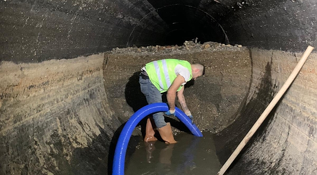 24 saat kesintisiz devam eden çalışmalarda önce borunun temizlenecek kısmındaki su akışı giyotin vanalarla kesiliyor. Daha sonra, hattaki su, açılan müdahale havuzları yoluyla diğer kolektör hattına yönlendiriliyor.