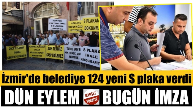 İzmir'de, iptal edilen 'S plaka' ihalesi nedeniyle mağdur edildiklerini öne süren bir grup esnaf, İzmir Büyükşehir Belediye binası önünde toplanıp dün eylem yapmıştı. S plaka için ödedikleri paraların geri verilmesini değil, plakalarını istediklerini belirten grup, kıyafetlerini çıkarıp, binanın önüne atarak, "Bizi böyle don, gömlek, atlet bıraktılar" diye bağırıp, tepkilerini dile getirmişti.
