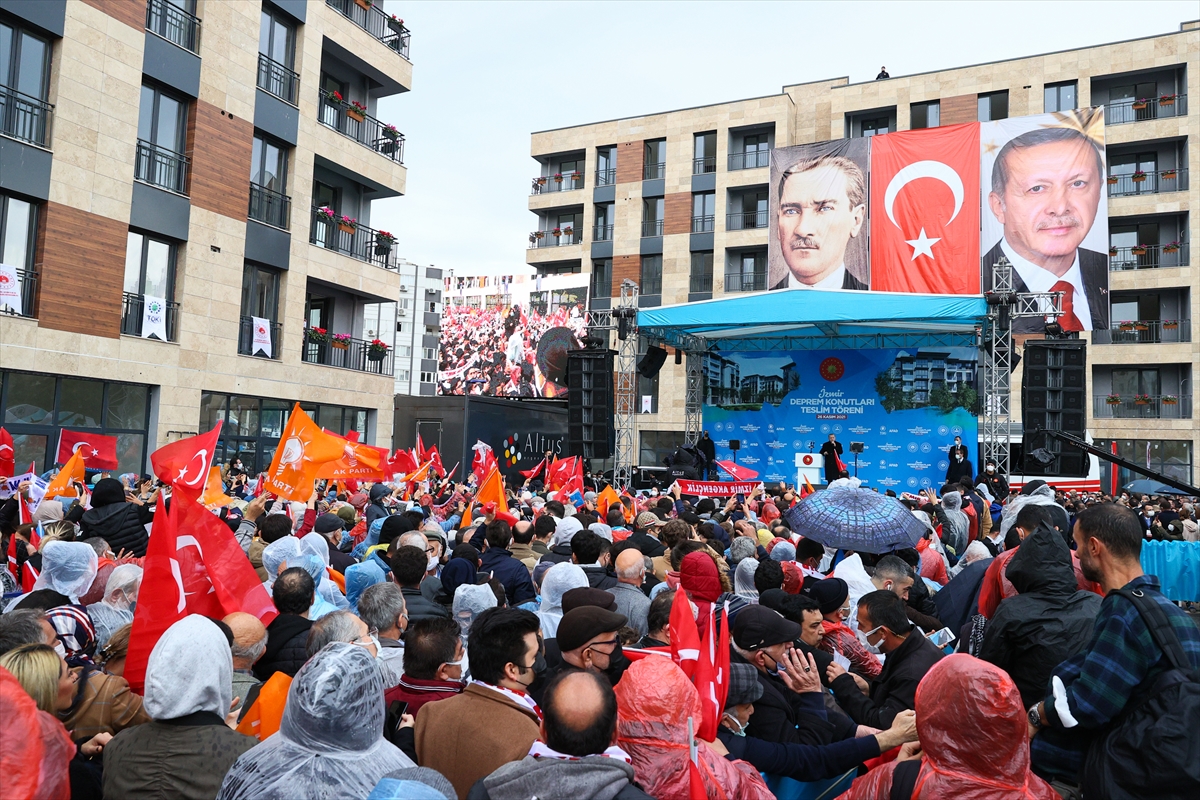 Kentte öğlen saatlerinde havayoluyla gelen Cumhurbaşkanı ve AK Parti Genel Başkanı Erdoğan cuma namazının ardından Bayraklı'ya geçti. Cumhurbaşkanı Erdoğan burada deprem konutlarının ilk teslim törenini gerçekleştirdi. Törende 596 konut ve 145 iş yeri sahibine yeni tapuları teslim edildi.