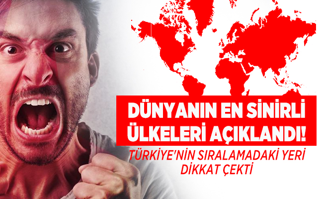 ABD merkezli global düzeyde araştırmalar yapan anket şirketi, dünyanın en sinirli ülkelerini sıraladı. Buna göre, Türkiye ikinci sırada yer aldı.