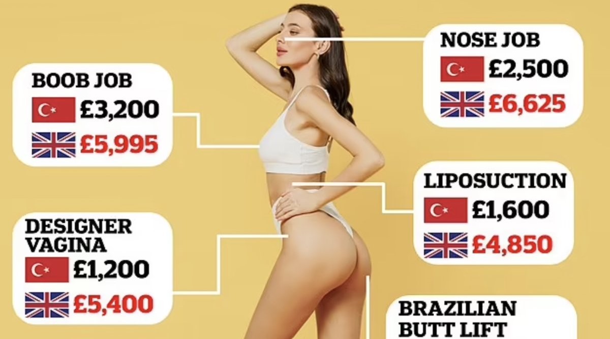 Daily Mail gazetesi Türkiye'nin dünyanın estetik başkenti olduğunu vurguladığı haberinde, İngiltere ve Türkiye'deki estetik operasyonların fiyatlarını karşılaştırdı.