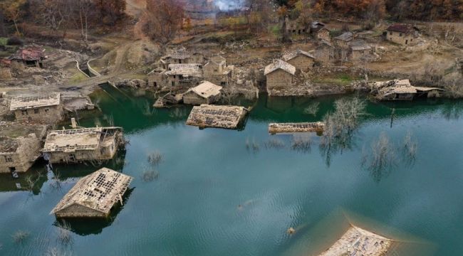 Isparta'da sular altında kalan köy evlerinde seyirlik görüntüler