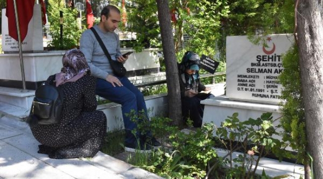 İZMİR'de Ramazan Bayramı'nın ilk günü şehit yakınları Kadifekale Hava Şehitliği'ni ziyaret etti. Bayram ziyareti için şehitliğe gelenler, şehit mezarlarının başında dua edip, Kuran-ı Kerim okudu. Şehit yakınları, kabirlere su döküp çiçek bıraktı, mezar yerlerini temizledi.
