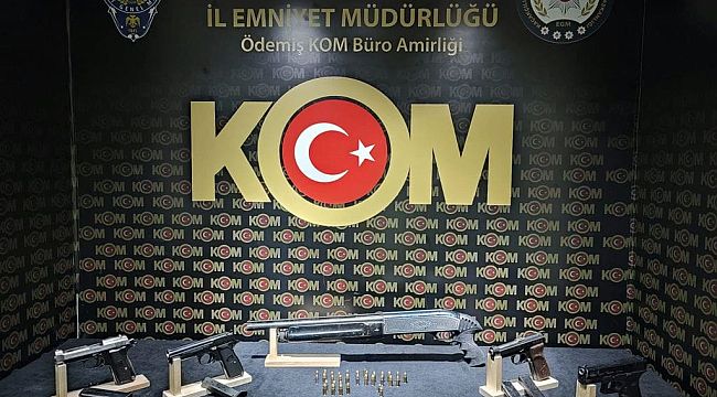 İzmir Organize Suçlarla Mücadele Şube Müdürlüğü Ödemiş Organize Büro Amirliği ekipleri, Ödemiş'te silah kaçakçılığı yapan 3 şüpheliyi tespit etti. Şüphelilerin ikametlerinde yapılan aramada, 4 tabanca ve 1 ruhsatsız tüfek ele geçirildi. Olayla ilgili 3 şüpheli de yakalanarak gözaltına alındı.