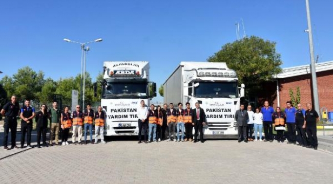 İZMİR Valiliği koordinesinde hazırlanan 2 TIR dolusu gıda ve hijyen paketlerinden oluşan yardım malzemesi, Pakistan'da selden zarar görenlere ulaştırılmak üzere yola çıkarıldı.