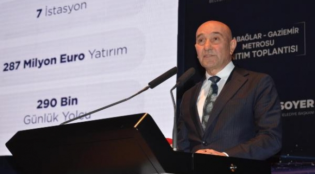 Dünyanın tüm çağdaş kentleri gibi İzmir'in de her karışının demir ağlarla örüldüğünü ifade eden Soyer, sözlerini şöyle sürdürdü: "İzmir'in raylı sistemler ağının yeni halkası olacak Karabağlar-Gaziemir Metro Hattı'nı sizlerle paylaşmak üzere buluştuk. Karabağlar-Gaziemir Metro Hattı, İzmir Hafif Raylı Sistemi'nin 6'ncı aşaması. 32,6 kilometrelik bu hat, tamamlandığında İzmir'in en uzun metro hattı unvanını alacak. Tamamı yer altında hizmet verecek bu hatta 24 istasyon yer alacak. Bu istasyonlardan 3'ü Menderes sınırları içinde kent merkezi ile Menderes arasındaki ulaşımı kolaylaştıracak. Karabağlar-Gaziemir Metro Hattı'yla günde 340 bin yolcu taşımayı öngörüyoruz. Buca Metrosu 765 milyon Euro'luk bedeliyle İzmir tarihinin en büyük yatırımı olmuştu. Karabağlar-Gaziemir Metro Hattı'nın toplam maliyeti 2 milyar 105 milyon Euro. Yani İzmir tarihinde yapılmış en büyük yatırım rekorunu böylece yeniden kırmış olacağız. Üstelik bunu da baştan sona İzmir Büyükşehir Belediyesi'nin kendi kaynaklarıyla başaracağız."