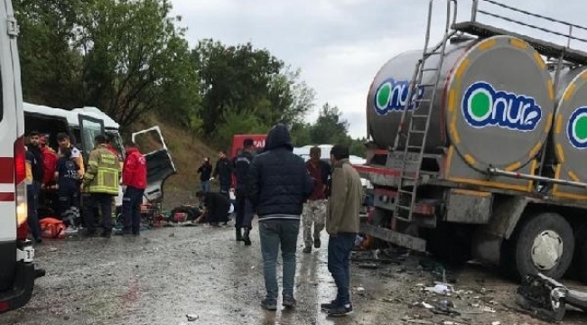 Balıkesir'in Dursunbey ilçesinde, düğüne gitmekte olanların içinde bulunduğu minibüs ile süt taşıma tankerinin kafa kafaya çarpıştığı kazada, yaşamını yitirenlerin ve yaralıların kimlikleri belli oldu.