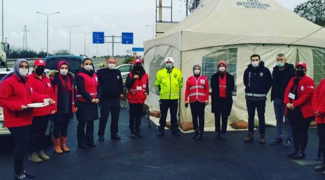 Ünye Kızılay Kadın Kolları Yönetimi, şehrin bir çok noktasında görevli Emniyet, Jandarma Kontrol Merkezleri ile 112 Sağlık çalışanlarına ziyarette bulunarak tatlı, kurabiye ve sıcak çay ikramında bulundu.