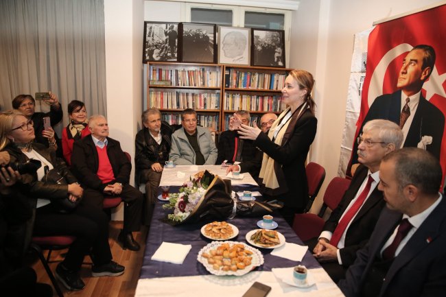 Başkan Adayı Mutlu, günün ilk mesaisinde Atatürkçü Düşünce Derneği (ADD) Konak Şubesi’ni ziyaret etti. Ziyarette Mutlu’ya, CHP İzmir Eski Milletvekili Kani Beko ve CHP Konak İlçe Başkanı Ozan Ali İlgazi de eşlik etti. Şube Başkanı Müfit Eriş ve yönetim kurulu üyeleriyle bir araya gelen Mutlu’ya, Ulu Önder Mustafa Kemal Atatürk’ün imzasını taşıyan fular takdim edildi. Ziyarette büyük sürprizler de yaşayan Mutlu’ya, üniversite yıllarında doğum günü pastası üflerken çekildiği bir fotoğraf ve sanatçı Deniz Aygün Araal tarafından “Geliyor Nilüfer Çınarlı Mutlu” adlı seçim şarkısı hediye edildi. Atatürkçü Düşünce Derneği’ne 1990’lı yıllardan beri üye olduğunu belirten Mutlu, “Bugün 14 Şubat Sevgililer Günü. Bizim en büyük sevgilimiz Ulu Önder Mustafa Kemal Atatürk. Cumhuriyet değerlerine yapılan saldırıları püskürtmek için ilk fırsatımız yerel seçimler. Seçimlerde İzmir’in 30 ilçesini birden alacağız. Beş yıl boyunca örnek bir belediyecilik yapacak ve 2028’de de iktidarı alacağız. Hiçbir zaman umudumuzu kaybetmeyeceğiz. Onlar Atatürk’ün bütün ilkelerine karşı savaşlarını her fırsatta sürdürüyorlar. Bugüne kadar yerel yönetimlerde tarikatlarını beslediler. Kamu kaynaklarını tarikatlara devrettiler ve gerici bir sistemi beslediler. Biz de mücadelemizle onları geri püskürtmeye devam edeceğiz. Konak Belediyesi’nde önümüzdeki beş yıl boyunca eğitime de sahip çıkacağız. Çocuklarımızı etütlerle, kurslarla ve sporla destekleyeceğiz. Çocuklarımızın laik hayat içinde iyi eğitim almış, iyi yerlere gelmiş bireyler olması için bütün Atatürkçülerle birlikte yol yürüyeceğiz” dedi.