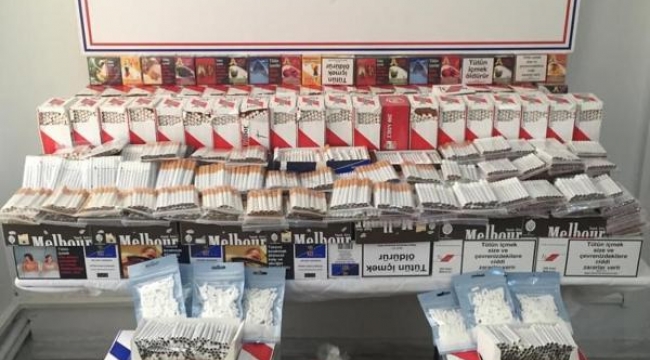 MANİSA'nın Şehzadeler İlçesinde jandarma ekiplerince bir iş yerinde yapılan aramada 29 bin 780 içi tütün ile doldurulmuş bandrolsüz sigara, 48 bin 950 boş makaron, 12 bin 800 sigara filtresi, 7 kilogram açık tütün, 320 sahte bandrol ve 5 kilogram nargile tütünü ele geçirildi.