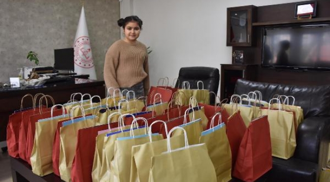 İZMİR'de yaşayan 4'üncü sınıf öğrencisi Masal Gençoğlu (9), elleriyle yaptığı bileziklerden elde ettiği yaklaşık 6 bin liralık gelirle depremzede öğrenciler için hazırladığı hediyeleri ilçe milli eğitim müdürlüğüne teslim etti.
