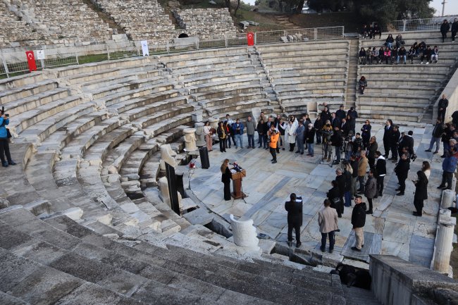 Programda açıklama yapan DEÜ Rektörü Prof. Dr. Nükhet Hotar, antik kentte binlerce yıl önce yaşayanların su baskınlarına karşı almış oldukları önleme dikkat çekti. Hotar, "Sayın Recep Meriç hocamız 1990 yılında bu yapının, bu buluntunun varlığını keşfetmiş ve kazı çalışmalarını başlatmış. Yaklaşık 30 yıl süren bir geçmişten sonra bir süre ara verilmiş hocamızın emekli olmasından itibaren daha sonra bizim kadromuza aldığımız Serdar hocamızdan sonra tekrar sayın Cumhurbaşkanımızın da imzasıyla bu kazıyı yapma yetkisi üniversitemize verildi ve iki yıldır devam ettirmekteyiz. Antik kent çok kıymetli. Ülkemizin her bir taşı çok kıymetli. Bu kentin, bu tiyatronun hiç bozulmadan neredeyse orijinal olarak bulunmuş olması çok değerli. Konunun uzmanı hocalarımız özellikle su baskınlarına karşı çok özel bir su tahliye sisteminin olduğunu anlattı. Kentin diğer bölümlerinde özellikle konut olarak kullanılan villaların zemininde halı yerine adeta yapılmış çok kıymetli mozaikler var. Mozaiklerde genelde erkek ve kadın figürü ve birbirine bakar vaziyette. Biz onları evin sahipleri olarak düşündük. Hocalarımız öyle olabileceğini anlattı” diye konuştu.