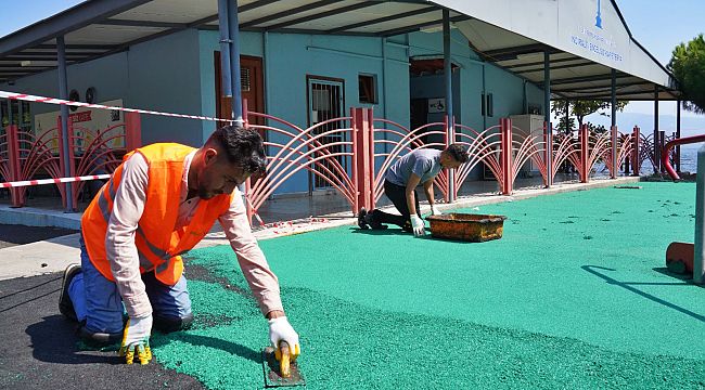 İzmir Büyükşehir Belediyesi kentin dört bir yanındaki parkların zeminlerini yeniliyor. 3 ayda 30 parkta zemin yenilemesi yapan ekipler, oyun gruplarının bakımlarını da tamamladı.