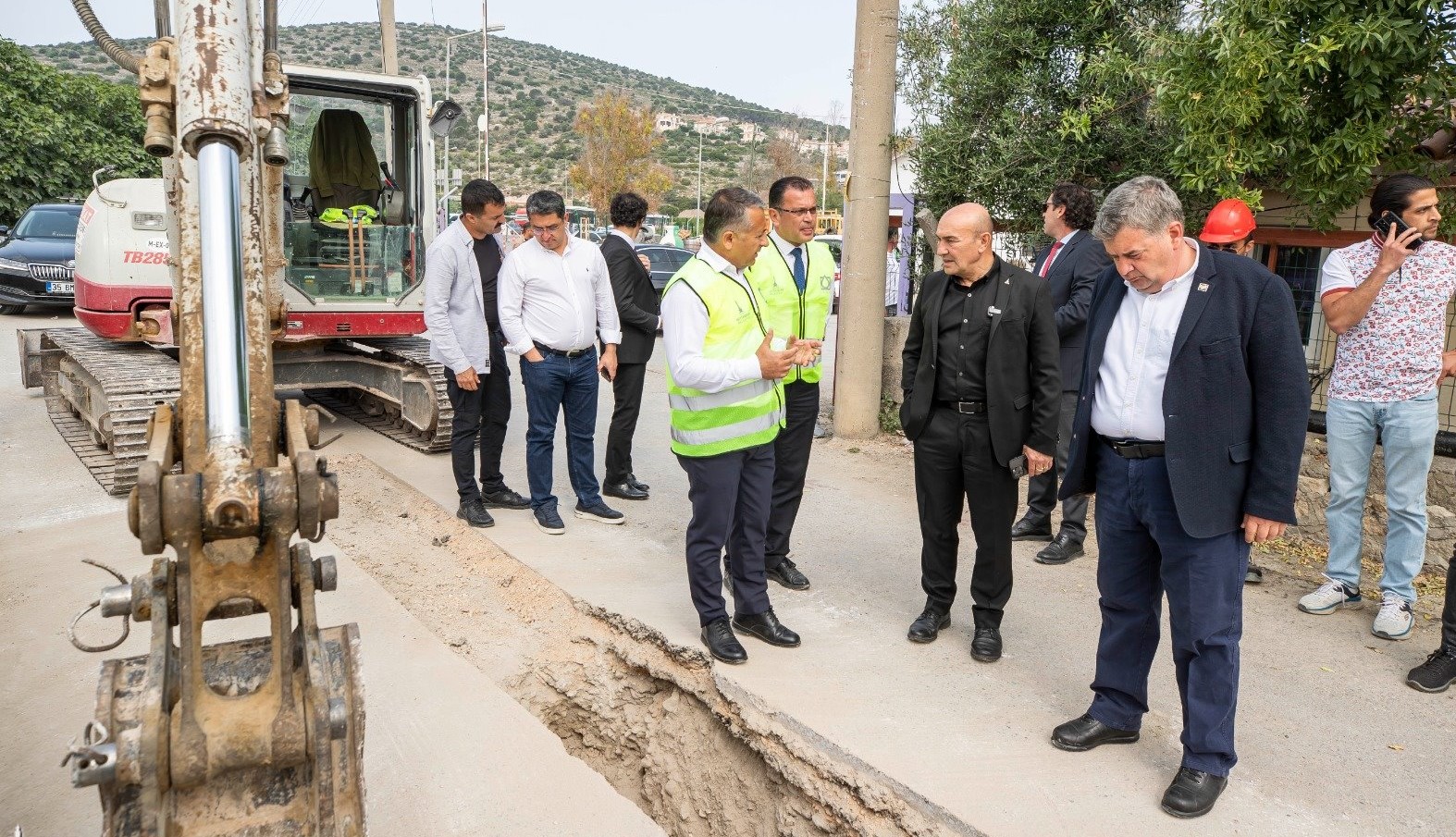 İzmir Büyükşehir Belediye Başkanı Tunç Soyer, İZSU ve İZBETON A.Ş. tarafından Çeşme’de yürütülen çalışmaları inceledi. Başkan Tunç Soyer’e Çeşme Belediye Başkanı Ekrem Oran, İZSU Genel Müdürü Ali Hıdır Köseoğlu, İZBETON A.Ş. Genel Müdürü Heval Savaş Kaya, İzmir Büyükşehir Belediyesi Genel Sekreter Yardımcısı Özgür Ozan Yılmaz ve Büyükşehir Belediyesi bürokratları eşlik etti.