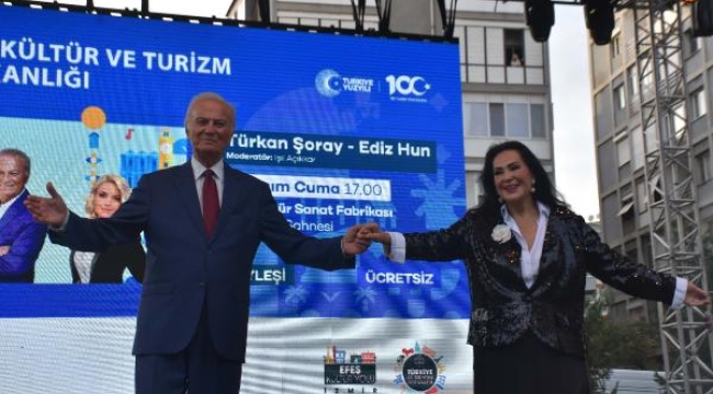 Kültür ve Turizm Bakanlığı'nca düzenlenen etkinlik kapsamında İzmir Kültür Sanat Fabrikası'nda sinemanın iki usta ismi Türkan Şoray ve Ediz Hun, sanatseverlerle buluştu. İzmirlilerin yoğun ilgisiyle karşılaşan ikili, geçmişten günümüze sinema anılarını anlattı.
