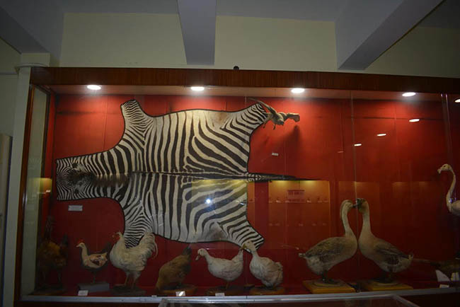 Müzede yer alan eserler ile ilgili bilgi veren Tabiat Tarihi Uygulama ve Araştırma Merkezi Müdürü Prof. Dr. Kerim Çiçek, “Müzemizde yaşam tarihinin simgesi olan fosiller, kayaç ve mineraller ile birlikte tahnit edilmiş kuşlar, omurgalılara ait iskeletler ve güncel omurgasız hayvanlara ait örnekler olmak üzere toplam 6 bin obje, 6 farklı galeride sergileniyor. Bu galeriler; Paleontoloji, Kayaç ve Mineraller, Kuşlar, Genel Zooloji, Evrim-Karşılaştırmalı Osteoloji Galerisi ve Giriş bölümlerinden oluşuyor. Ayrıca yaklaşık 5 bine yakın fosil ve kayaç örneği, müze laboratuvarındaki envanter dolaplarında yer alıyor. Müzemizin envanter dolaplarında 5 bin 500 adet omurgalılara ait fosil materyal bulunuyor. Müzemizde, Türkiye’de hiçbir müzede bulunmayan mikro memelilere yani kemirgenler ve böcekçilere ait fosil koleksiyon yer alıyor. Toplam da 12 bin 500 fosil materyal bulunuyor” dedi.