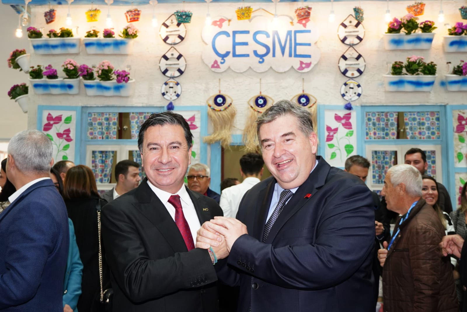 Çeşme’nin ünlü Çeşme limonu, Çeşme mandalinası, karakılçık buğdayı ve karakılçıktan üretilen ekmeği, dünyaca ünlü Çeşme anasonu, coğrafi işaret alan Çeşme kavunu, beyaz soğanı, sakız enginarı, zeytinyağı ve sakızı da stantta sergilendi. Standa gelen ziyaretçilere, Çeşme’nin tarihi ve doğal güzellikleri, ince kumu ve berrak denizi, mavi bayraklı plajları, gastronomisi, dünyaca ünlü sörf ve kitesurf merkezleri de tanıtılarak, huzurlu, güvenli, sağlıklı tatil için turizm cenneti Çeşme’ye davet ediliyor.