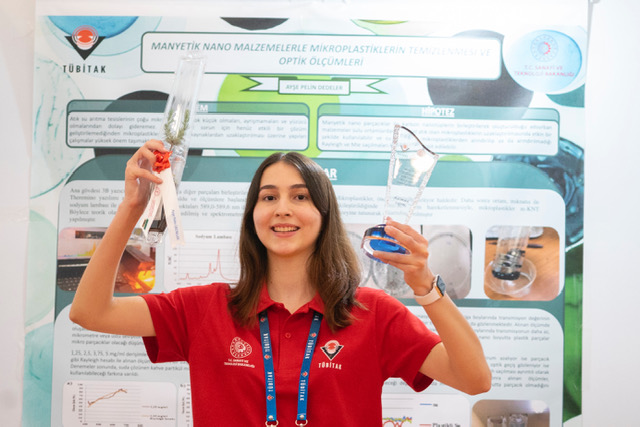 Özel Çakabey Okulları 11. sınıf öğrencisi Ayşe Pelin Dedeler, Proje Koordinatörü Viki Kalderon rehberliğinde hazırladığı “Manyetik Nano Malzemelerle Mikroplastiklerin Temizlenmesi ve Optik Ölçümleri” isimli Fizik projesiyle Türkiye 1.liği ödülünü kucakladı.