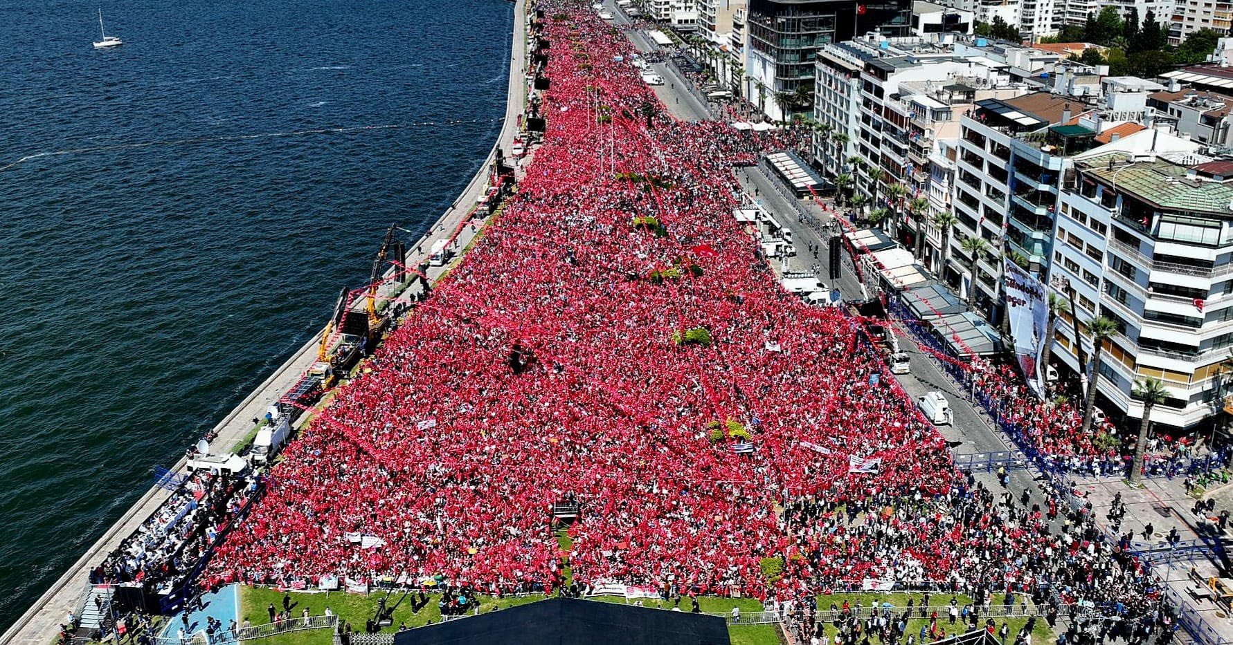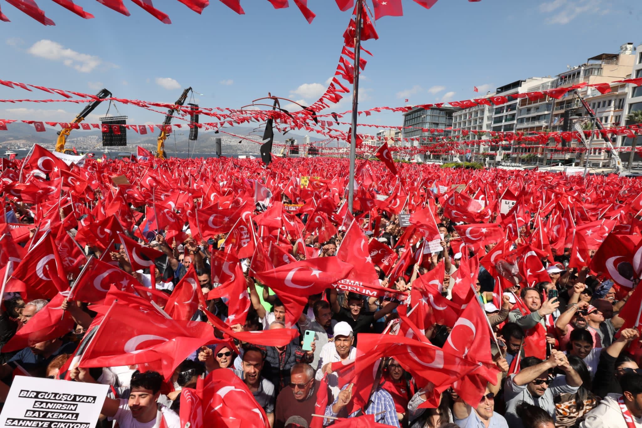 Millet İttifakı 13.Cumhurbaşkanı Adayı ve Cumhuriyet Halk Partisi Genel Başkanı Kemal Kılıçdaroğlu, İzmir-Gündoğdu Meydanı’da düzenlenen mitingde konuştu. Kılıçdaroğlu mitingde iktidar olması durumunda ekonomi, hukuk, iç ve dış siyasette devrim niteliğinde adımlar atacaklarını söyledi.