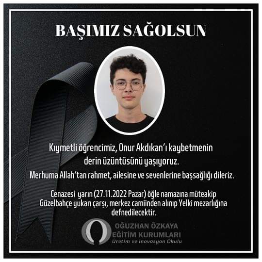 Liseli gencin ölümü başta ailesini, okul arkadaşlarını ve tüm sevdiklerini derinden üzdü. Onur Akdıkan, yarın Güzelbahçe Yukarı (merkez) Camii'nde kılınacak öğle namazına müteakip, Yelki Mezarlığı'nda toprağa verilecek.