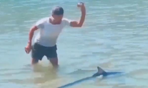 Görüntülerde elinde olta ile balığın yanına gelen bir kişi, balığın kafasına tokat attıktan sonra peşinden giderek kuyruğundan yakaladı. O kişinin balığı daha sonra kıyıya çıkarttığı öğrenildi.