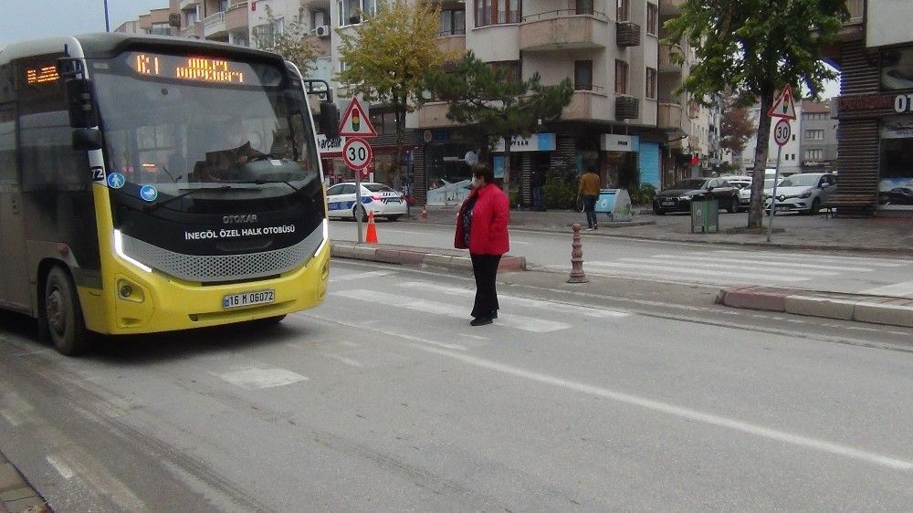 İnegöl'de yayaların öncelik olduğu yerlerde bir çok sürücü bunları hiçe sayıyor. İnegöl Emniyet Müdürlüğüne bağlı trafik ekipleri Ahmet Akyollu Caddesi'nde yaya geçidinde denetim yaptı. Trafik ekiplerinden biri kamerayı çalıştırdı yayalara yol vermeyen sürücülerinin plakaları tespit ederek ileride duran diğer ekibe telsizle bilgi verdi. Kuralları ihlal eden sürücüler tek tek duruldu. Önce ekipler tarafından uyarıldı ardından evrakları alınarak cezai işlem uygulandı. 1 saat içerisinde yapılan uygulamada yaklaşık 41 araç sürücü yayaya yol vermediği için ceza yedi.