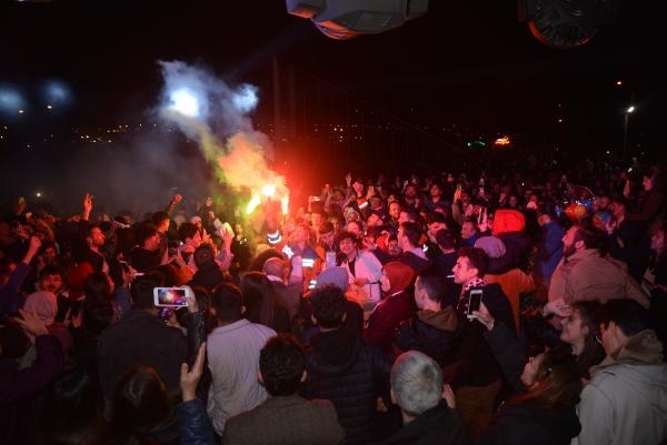Kutlamalarda Bandırmaspor tezahüratları yapan Bandırmalılar, şarkılar ve marşlar söyleyerek Süper Lig'e yükselme mücadelesi veren takımlarına destek verdi. Sahil bandında hazırlanan platformda Bandırmalılara seslenen Belediye Başkanı Tolga Tosun, "Bandırmamızın en önemli değerlerinden biri Bandırmasporumuz. İnşallah Play Off'ta bir üst lige çıkacağız. Yönetim kuruluna kuvvetli bir alkış istiyorum. Bugünü tekrardan kutluyorum. Hepinize sevgiler, saygılar sunuyorum. İyi ki varsınız, iyi ki beraberiz, İyi ki Bandırmamız var" dedi. (DHA)
