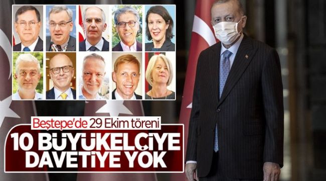 Cumhurbaşkanı Recep Tayyip Erdoğan, 29 Ekim Cumhuriyet Bayramı dolayısıyla Cumhurbaşkanlığı’nda düzenlenen törende tebrikleri kabul etti. Tutuklu iş insanı Osman Kavala’nın serbest bırakılması için Türkiye’ye çağrı yapan ve aralarında ABD, Almanya, Fransa ve Kanada’nın da olduğu 10 ülkenin büyükelçisi, tebrik törenine davet edilmedi. Törene davet edilmeyeceklerinin, büyükelçilere önceden tebliğ edildiği öğrenildi.