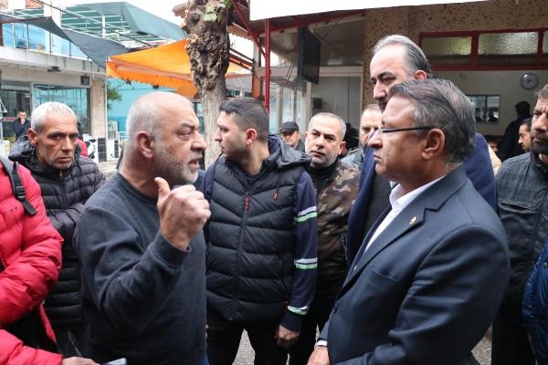 Öte yandan açıklama yaparken Özcan Purçu'nun sözünü kesen kişi, "3 şehit verdik, başsağlığı bile dilemediniz" derken, Purçu ise "Gel ben sana kanıtlayayım. Diledik mi? Dilemedik mi?" dedi. Başka biri ise işsizlikten dert yanıp, yetkililerden iş talebi olduğunu dile getirdi. (DHA)