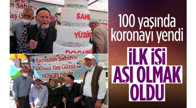 100 yaşında koronavirüsü yenen Ramazan Şahin için çocukları ve torunları doğum günü etkinliği düzenledi.