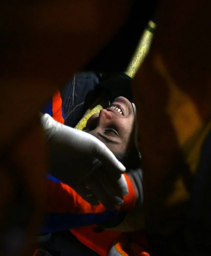 Kadının enkazdan çıkarılırken yaşadığı mutluluk ise kameralara yansıdı.