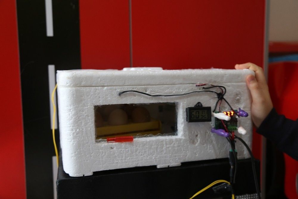 Canlı ders sonrası boş zamanlarını kuluçka makinesini hazırlamakla geçirdiğini ifade eden Yusuf Alpaydın, "Belgeselde civcivleri gördüm. Bende yapabiliriyim diye kuluçka makinesi tasarladım. Babamın yarımıyla internetten termostat, nem ölçer, derece ölçer, fan ve viyoler siparişi verdik. Daha sonra balıkçıya giderek strafor aldım. Straforu keserek cam yapıştırdım. Dereceyi, nem ölçeri ve termostatı sabitledim. Uğraştım tamamladım ve 21 gün sonra civcivler çıkmaya başladı. İlk çıkan civcive 'İlkyaz' adını koydum sonra devamı geldi. Ailem çıkarta bileceğime inanmıyorlardı. Civcivleri görünce onlarda çok mutlu oldular" dedi.