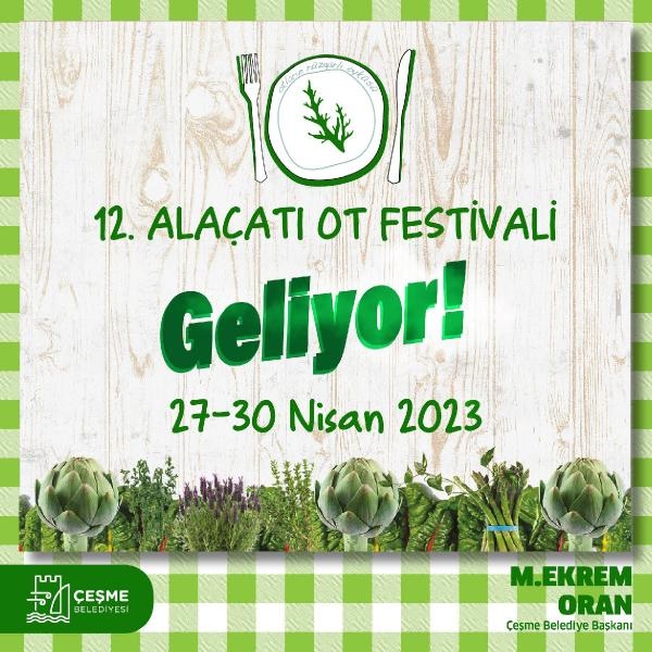 İZMİR'in Çeşme Belediyesi tarafından bu yıl 12'ncisi düzenlenecek olan Alaçatı Ot Festivali 27-30 Nisan tarihleri arasında gerçekleştirilecek. Bu yıl depremin yaralarını sarmak amacıyla düzenlenecek dayanışma festivalinde, depremden etkilenen 11 ilin bölgesel lezzetlerinden stantlar oluşturulacak.
