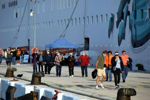 Kruvaziyer turizminin Akdeniz'deki önemli duraklarından Kuşadası Limanı, Yunanistan'ın ekim ayında deniz hudut kapılarını Türkiye'ye açmasının ardından hareketli günler yaşıyor. Bahama bayraklı ultra lüks yolcu gemisi Norwegian Jade bu sabah Kuşadası Limanı'na geldi. 93 bin 502 ton ağırlığında, 295 metre uzunluğunda ve 33 metre genişliğindeki gemiyle, ilçeye, çoğu ABD'li bin turist geldi. 15 katlı kruvaziyer gemiden inen turistlerin bir kısmı Efes ve Meryem Ana Evi turuna katılmak üzere otobüslerle limandan ayrıldı. Tur programına katılmayanlar ise ilçe merkezinde kalıp turistik çarşıda alışveriş yaptı.