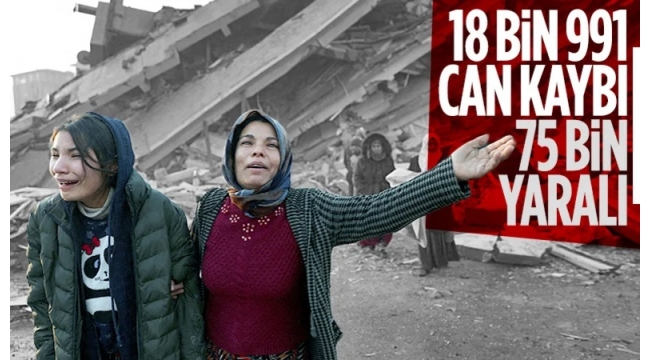 Cumhurbaşkanı Recep Tayyip Erdoğan deprem bölgesinde 18 bin 991 vatandaşımızın hayatını kaybettiğini, 75 bin 523 vatandaşımızın da yaralandığını açıkladı.