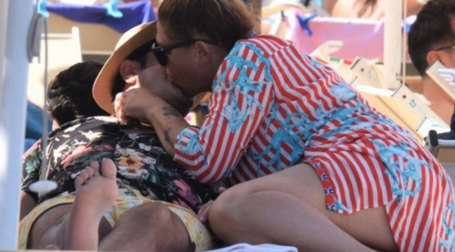 Çift, önceki gün Bodrum'da objektiflere yansıdı. İskelede romantik anlar yaşayan sevgililer birbirlerini öpücüklere boğdu.