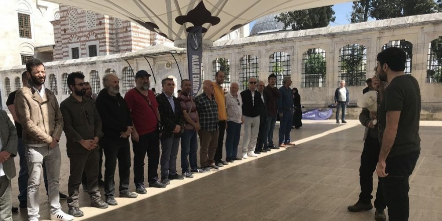 Fatih Camisi avlusunda toplanan gruptakiler, 1977 1 Mayısı'nda hayatını kaybeden işçiler için gıyabi cenaze namazı kıldı.