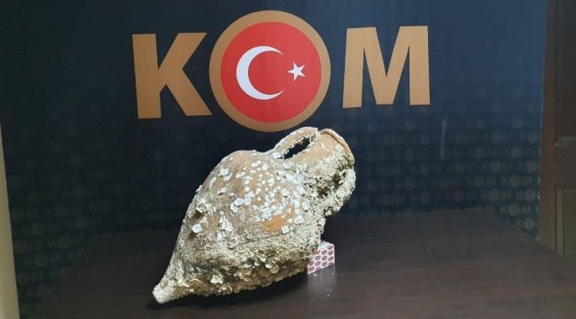 Aliağa Kaçakçılık ve Organize Suçlarla Mücadele (KOM) Amirliği, internet üzerinden antika değeri olan bir anforanın satışının gerçekleştirileceği şeklinde bilgiler elde etti. Konu ile ilgili olarak yapılan çalışmalar neticesinde, tarihi eserin satışını gerçekleştirecek kişinin kimlik bilgileri elde edilirken, adli makamlardan alınan talimatlar ve arama kararı uyarınca, şüpheliye ait bir depoda arama yapıldı. Arama neticesinde 70-75 cm uzunluğunda, alt kısmında deniz kabuğu parçaları bulunan ve antik değeri olduğu değerlendirilen eser ele geçirildi. Konu ile ilgili olarak H.G. isimli şüpheli şahıs yakalandı. Elde edilen eser ile ilgili olarak yapılan bilirkişi incelemesinde, antik anforanın yaklaşık 2 bin 500 yıllık ve paha biçilemez değerde olduğu belirtildi. Yakalanan şüpheli hakkında Kültür ve Tabiat Varlıklarını Koruma Kanunu kapsamında adli işlem yapıldı. Elde edilen tarihi eser İzmir Müze Müdürlüğü görevlilerine teslim edildi.