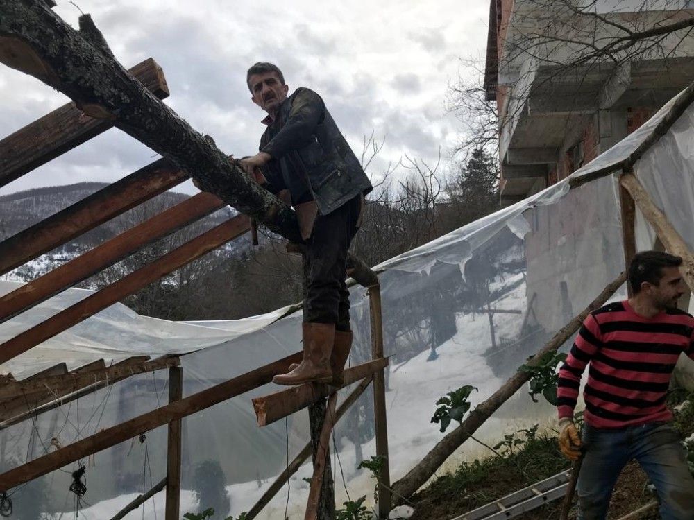 Kastamonu'nun İnebolu ilçesinde geçtiğimiz hafta etkili olan yoğun kar yağışı, köylerdeki birçok serada büyük hasarlara sebep oldu. Yaklaşık 2 metreye ulaşan kar, seraların yüzde 40'ınına yakınını kullanılamaz hale getirdi, 1 mandıra da yıkıldı.