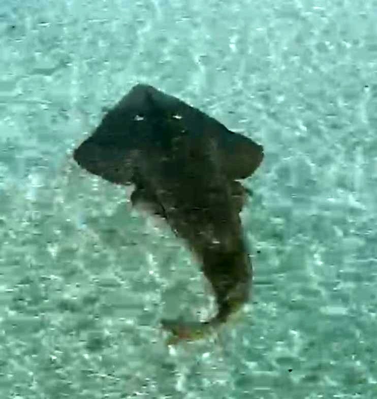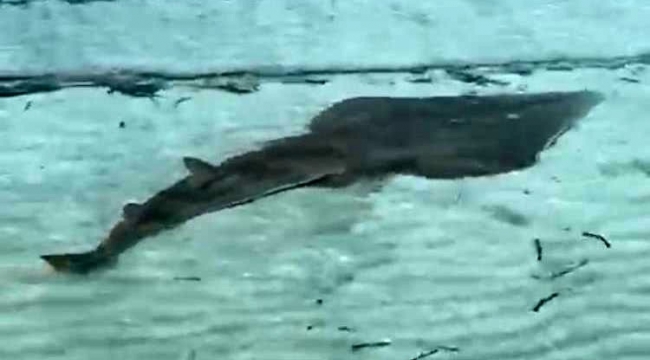 İzmir'in Çeşme ilçesinde, yaklaşık 2 metre uzunluğundaki kemane balığı bir vatandaşı cep telefonu kamerası tarafından görüntülendi.