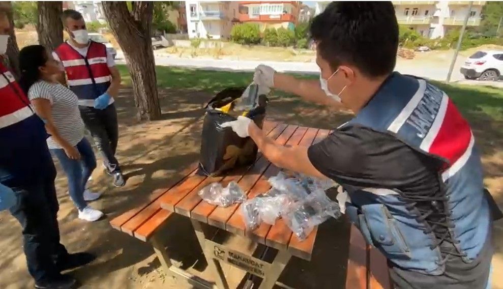 Silahların teslim edileceği parkta önlem alan ekipler, D.C. isimli kadını park içerisinde elindeki çantada 20 adet 9 minimetre tabanca ve bu tabancalara ait 20 adet şarjör ile birlikte ele geçirdi. Nöbetçi Cumhuriyet Savcısına bilgi verilerek alınan talimat doğrultusunda D.Ç.'nin aynı mahallede bulunan evinde yapılan arama sırasında 1 adet şarjör ele geçirilirken, arama yapan jandarma ekipleri evin balkonunda saklanan bir kişi gördü. Adının H.M. olduğu belirlenen şahıs ilk etapta D.C.'nin arkadaşı olduğunu, ortalık karışınca balkona saklandığını söyledi. Jandarma ekiplerinin ısrarlı soruları karşısında itirafta bulunan H.M., D.C.'nin kendisini 3 bin lira karşılığında Konya'dan bir şeyler getirme karşılığında tuttuğunu, parasını alamadığı için silahların teslimatını beklediğini söyledi.